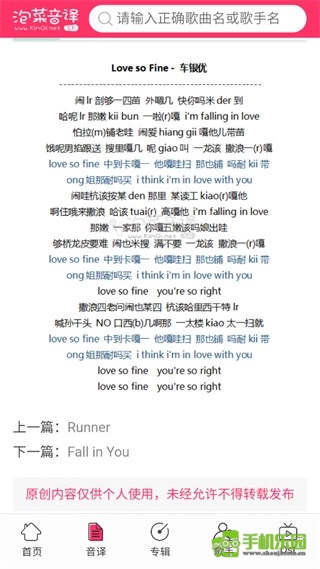 1、在本站并打开软件,选择需要查看音译的歌曲或者在搜索框搜索歌曲