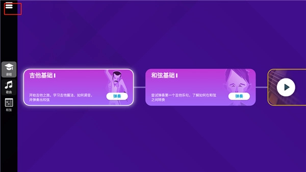 1、打开本站SimplyGuitar,进入首页后点击左上角的按钮。