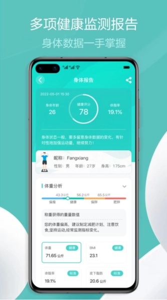 通过智能蓝牙技术与云端存储技术的应用,连接电子秤、智能手表等设备,获取更精准的数据,从而让身体状况的分析判断更为准确。
