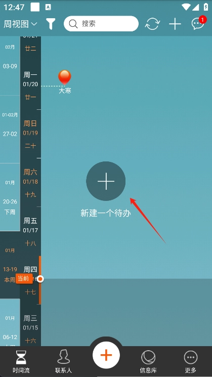 1. 点击屏幕中间的加号新建待办。