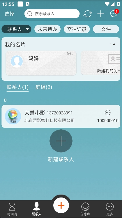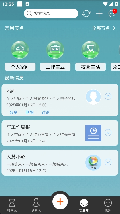 时间流与联系人信息在信息库中沉淀,构成个人信息的完整集合。