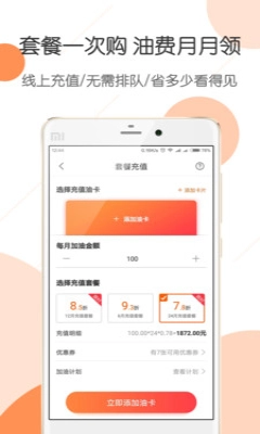 优惠加油套餐,各个套餐都能享受不同的折扣;
