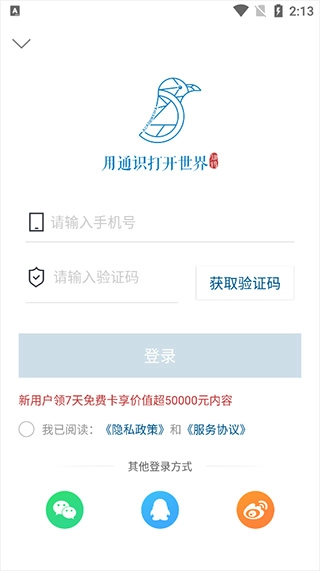 1、启动后,新用户需要使用号和验证码进行登录。
