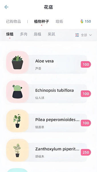 3、在花店界面上能看到有很多植物可供选择,点击“芦荟”;