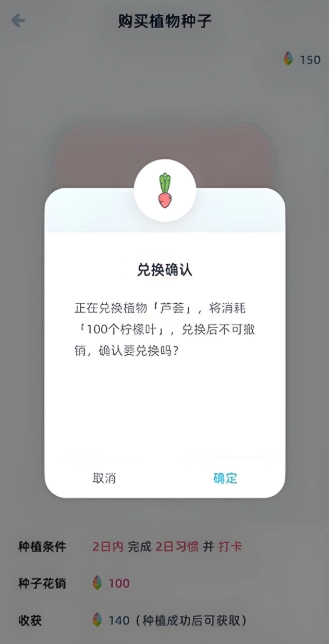 4、在购买植物种子的界面上点击“立即兑换”;