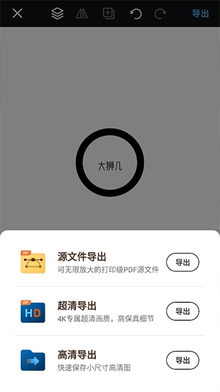 2、进入logo制作页面后,可依据个人创意进行设计创作,完成后点击导出按钮即可。
