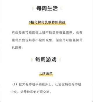 每周推送贴合宝宝周龄的养育重点、每周生活、玩法、专家问答等内容。