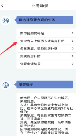 1、进入“购房补贴”,选择需要办理的业务;