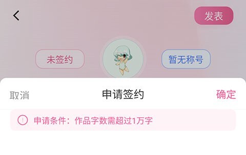 3、申请条件为:作品字数需超过1万字。