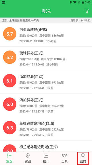 3、地震震级可以过滤地震的最低震级以上的数据。