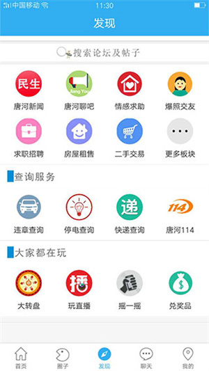 5、“发现”板块主要是为网友们提供更便捷的分类信息浏览和服务型功能使用体验