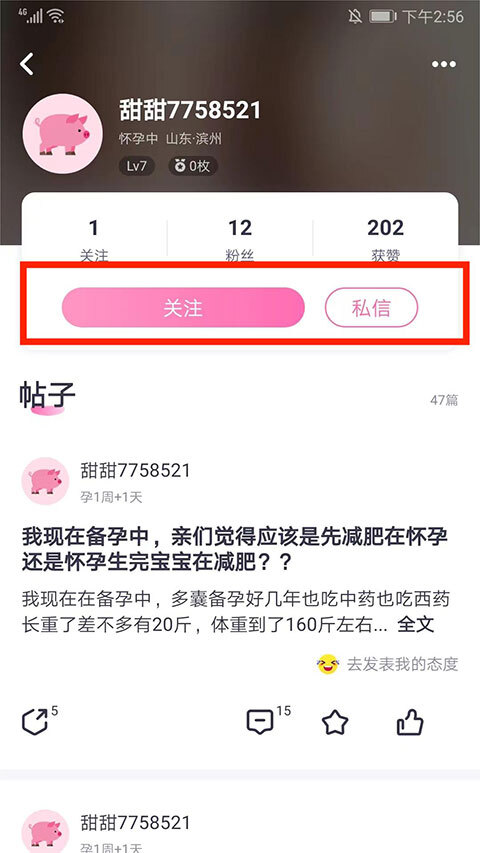 2、可以在妈妈帮社区栏目,选择感兴趣的帖子和朋友,点击“头像”选项,