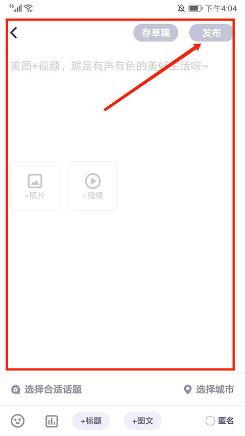 3、进入发帖界面,编辑好帖子内容后,选择右上角“发布”即可发帖子。