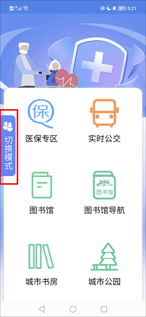 2、当前已处于关怀模式,用户可点击红色方框内的“切换模式”选项来进行模式切换。