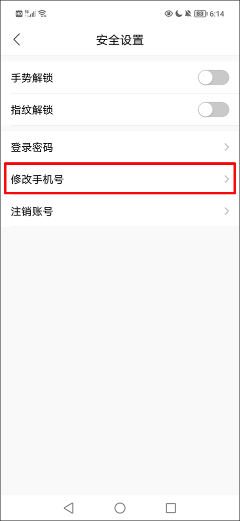 2、在安全设置界面找到并点击“修改号”选项;