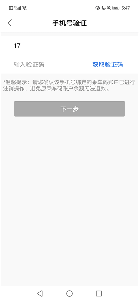 4、在输入验证码后点击下一步按钮;