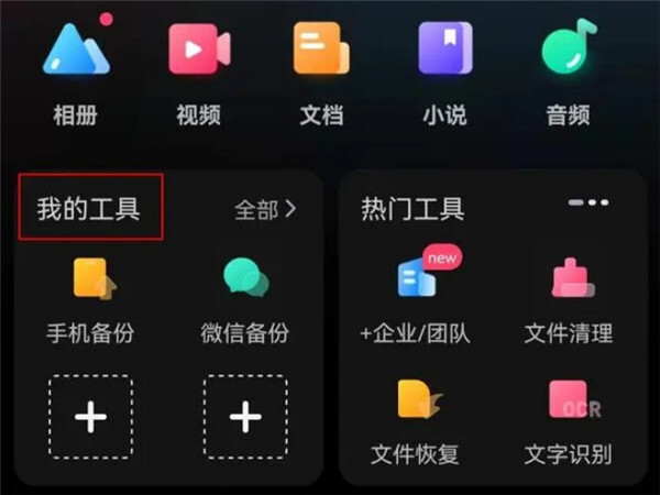 步骤一:打开端的百度网盘软件,在【首页】中点击【我的工具】。