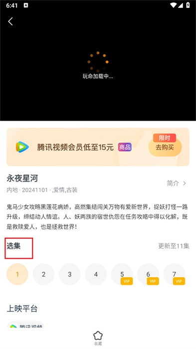 4、可以通过选集区域进行剧集集数的选择;