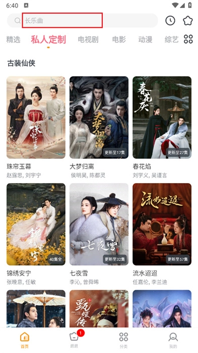 1、点击屏幕上方的搜索框,以进行相关剧集的搜索;