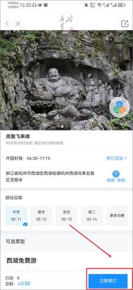 3、景区选择完成后,然后在该景区的详情界面中点击立即预订
