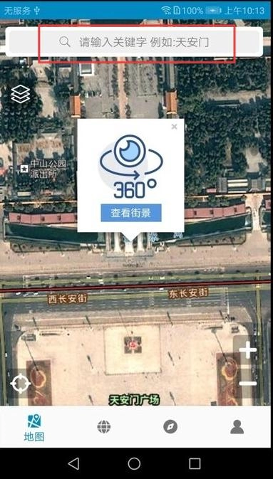 1、启动百斗星图应用,进入地图页面后,在顶部的搜索框中输入目标地点的相关关键词,以此来启动卫星街景的搜索与定位流程。