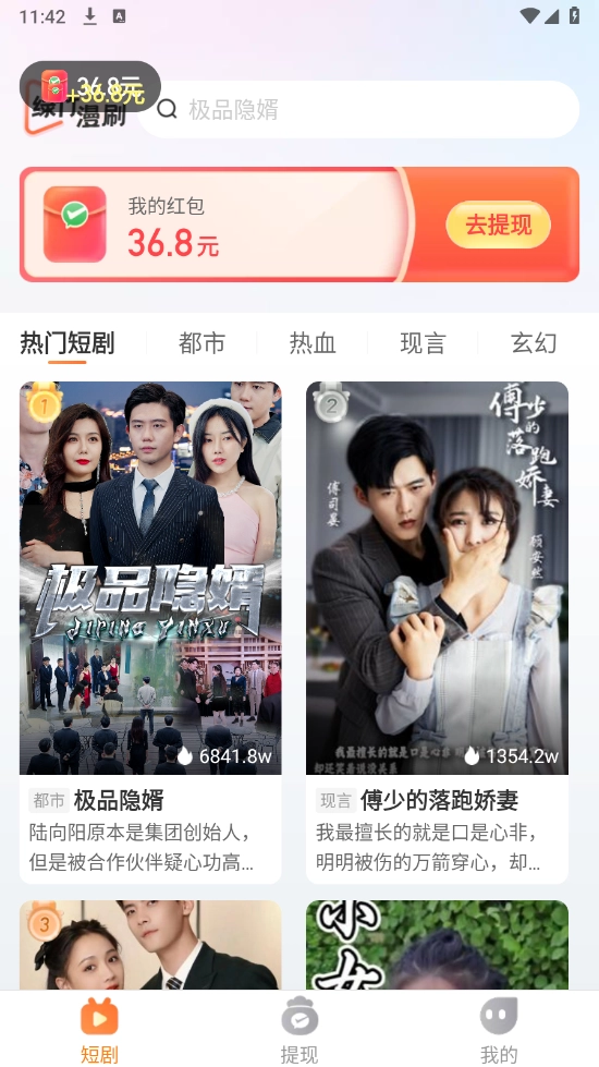 2、在首页浏览喜欢的短剧资源,包括言情、科幻以及玄幻等。