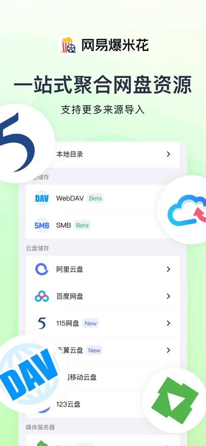 网易爆米花是一款具备智能识别功能的视频播放器,它能够直连115网盘、阿里云盘、百度网盘、123云盘、中国移动云盘等多个云存储平台,并且独家支持天翼云盘,同时还兼容WebDAV、SMB协议以及Emby媒体库,也能满足本地视频的播放需求。这款播放器可以聚合电影、电视剧、综艺等各类影视资源,自动匹配对应的海报、评分、简介等媒体信息,还能自动将内容归类为合集,帮助用户搭建属于自己的个性化私人影视库。此外,它支持电视、平板、电脑等多终端跨平台观影,能够同步影视资源和播放记录,让美剧、日剧、韩剧以及动漫爱好者在看番、追剧时获得满满的幸福感!