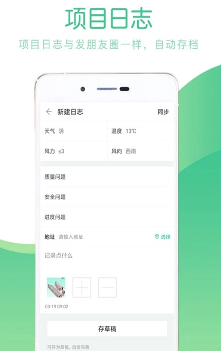 支持撰写施工日志,让日志提交和查看更简单、更及时;