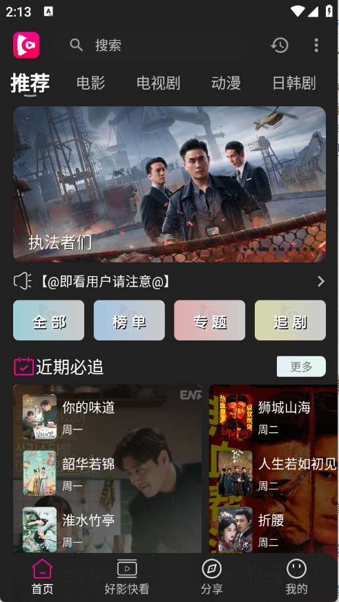 即看影视拥有丰富的影视资源库,通过清晰的分类体系帮助用户迅速定位心仪影片,平台涵盖电视剧、电影、综艺等各类内容,均支持观看,高清流畅的播放画质为用户带来沉浸式的视觉享受。