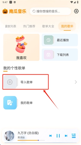 2、进入“我的歌单”页面后,点击“导入歌单”按钮。