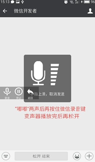 5、听到嘟嘟两声后再按住微信录音键进行正常语音录音