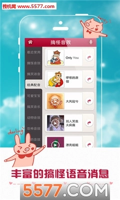 微信变声、朋友圈搞怪、整蛊好友、微博刷存在感都能靠它实现;录制一段声音,为其添加各类效果后,可保存至SD卡并分享到微信、微博平台。