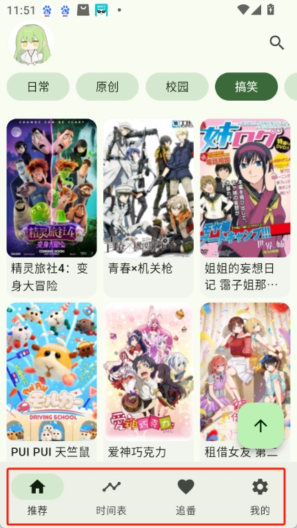 1. 打开Kazumi后,界面从左到右排列着「首页」「时间表」「追番」「设置」这几个选项。其中时间表功能展示的是每周各天对应的动漫更新信息,对于常看动漫的朋友来说,这部分内容应该比我更熟悉。