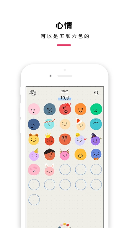 1、用丰富多样的心情表情来展现每一天的状态,让记录变得更鲜活有趣。