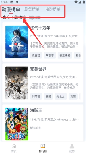 2、进入榜单页面可查看动漫、剧集及电影排行榜,掌握热门作品动态。
