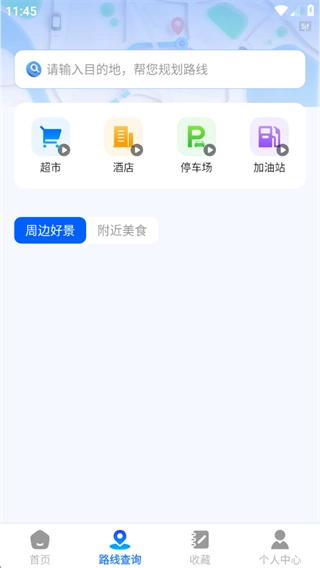 2、输入目的地就可以为你规划线路,还能展示附近的超市、酒店、停车场、加油站等;
