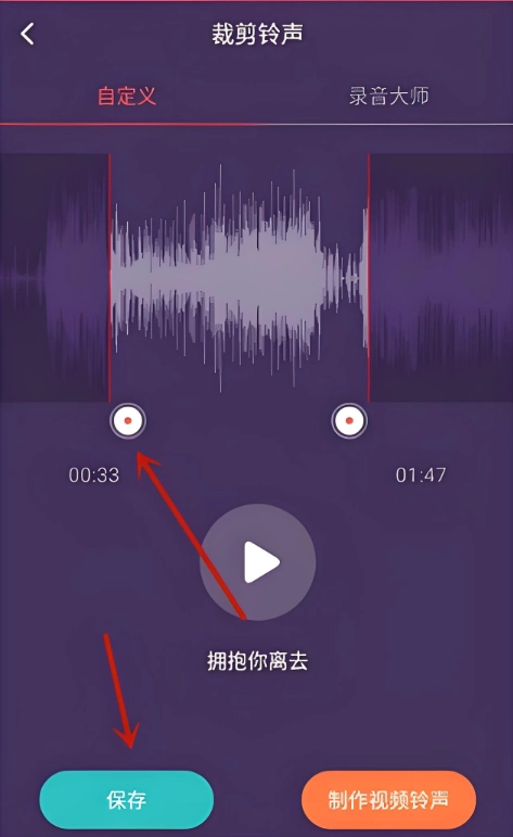 3、调整音乐的起始与终止位置,完成音乐裁剪后,点击“保存”按钮。