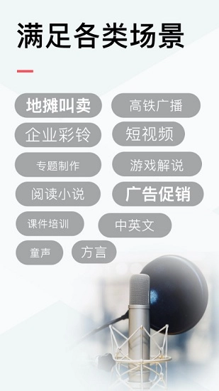 1. 广告促销配音:涵盖商场广告促销配音、地摊叫卖配音等类型