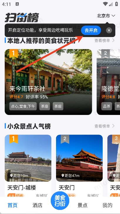 -在App首页一键进入扫街榜,实时查看附近/全城榜单