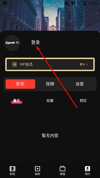 2、在【Eynak-TV】主界面,点击对应标识的选项,可跳转至登录页面,进行账号的登录或注册操作。