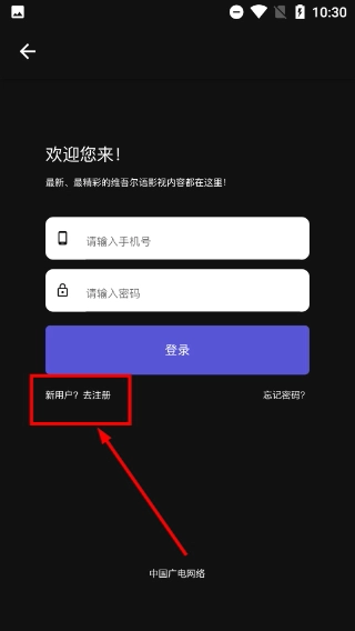 3、在登录页面,点击对应标识的选项,可进入注册界面,开始新账号的信息填写流程。