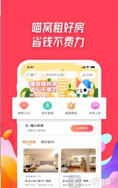 喵窝租房拥有海量房源,能为你提供更安全的平台,让你轻松找房、省钱省心。平台所有房源都经过严格认证,大家可以放心使用;这里提供的公寓房源真实可靠,你看到的图片什么样,实际房子就是什么样,完全无需担忧,找房过程轻松又安心。