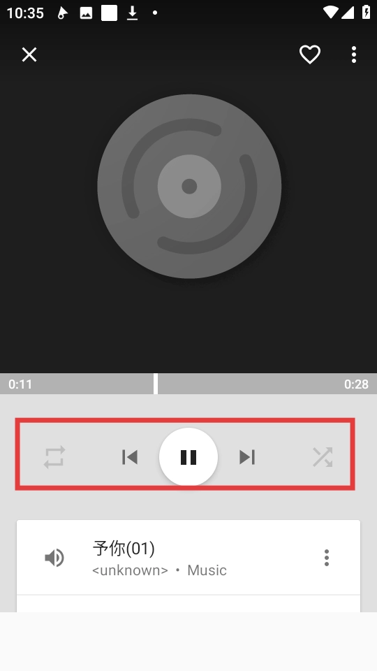 4、在播放界面中,通过红色框内的控制按钮可进行播放/暂停、切换歌曲、调整播放循环等操作。