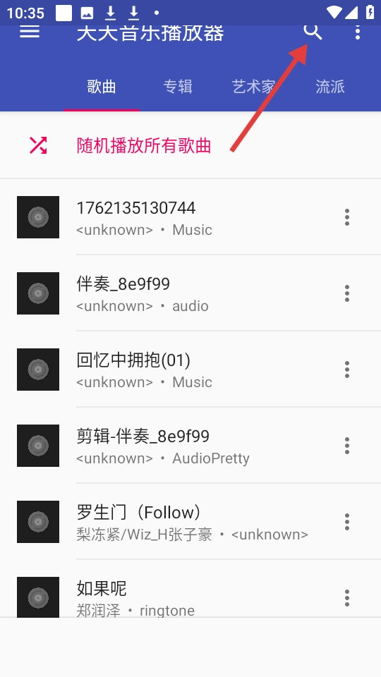 1、点击天天音乐播放器右上角的搜索图标,可进入搜索界面。
