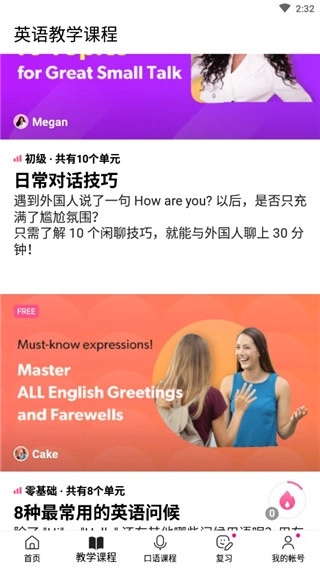 3、课程覆盖工作、学习、娱乐旅游等多个领域,包含上千个源自日常生活的场景对话,让你学习后能直接在现实生活中运用。