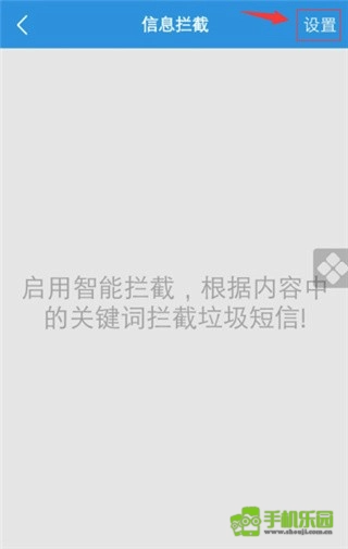 2、接着,在骚扰拦截的界面点击右上角的设置;