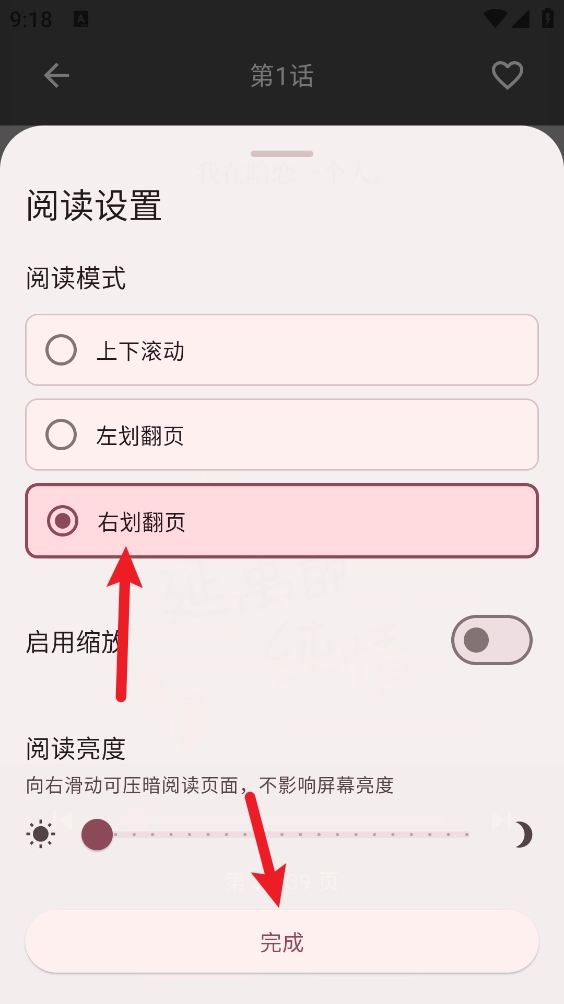 5、如上图所示,在当前页面挑选自己喜爱的阅读模式,之后点击底部的“完成”按钮就可以了。
