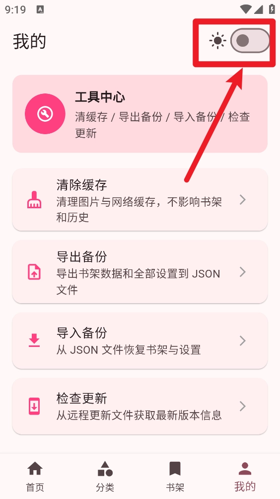 2、接着打开我的右上角的夜间开关按钮。
