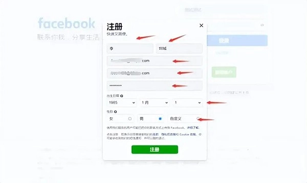 2、分别输入 姓、名、邮箱、密码、生日、性别