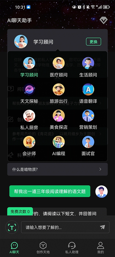 1、在首页里,用户能够向AI智能助手提出各类问题,而AI智能助手也会给出准确的解答。